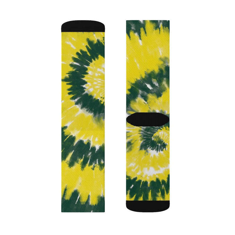 Green & Yellow Tie Dye Adult Crew Socks
