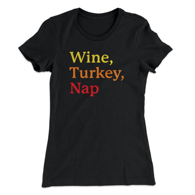 Wine, Turkey, Nap Funny Thanksgiving Women's T-Shirt